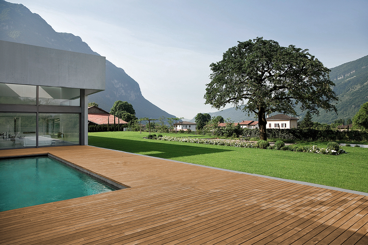Mit unseren Bodenprofilen aus Holz gestalten Sie Ihren Aussenbereich zu einem Ort der Entspannung und Natürlichkeit. Holz bringt Wärme und Charakter in jeden Garten, Balkon oder Poolbereich und sorgt durch seine angenehme Haptik für ein einzigartiges Wohlfühl-Erlebnis.